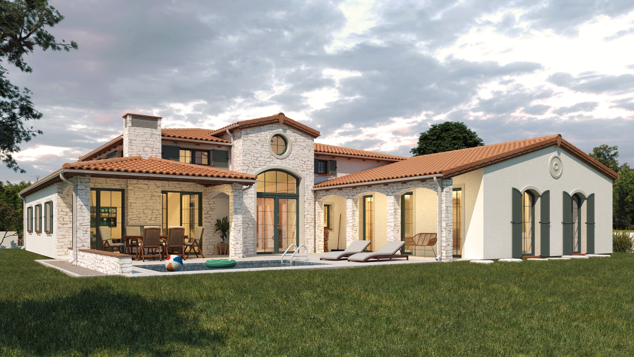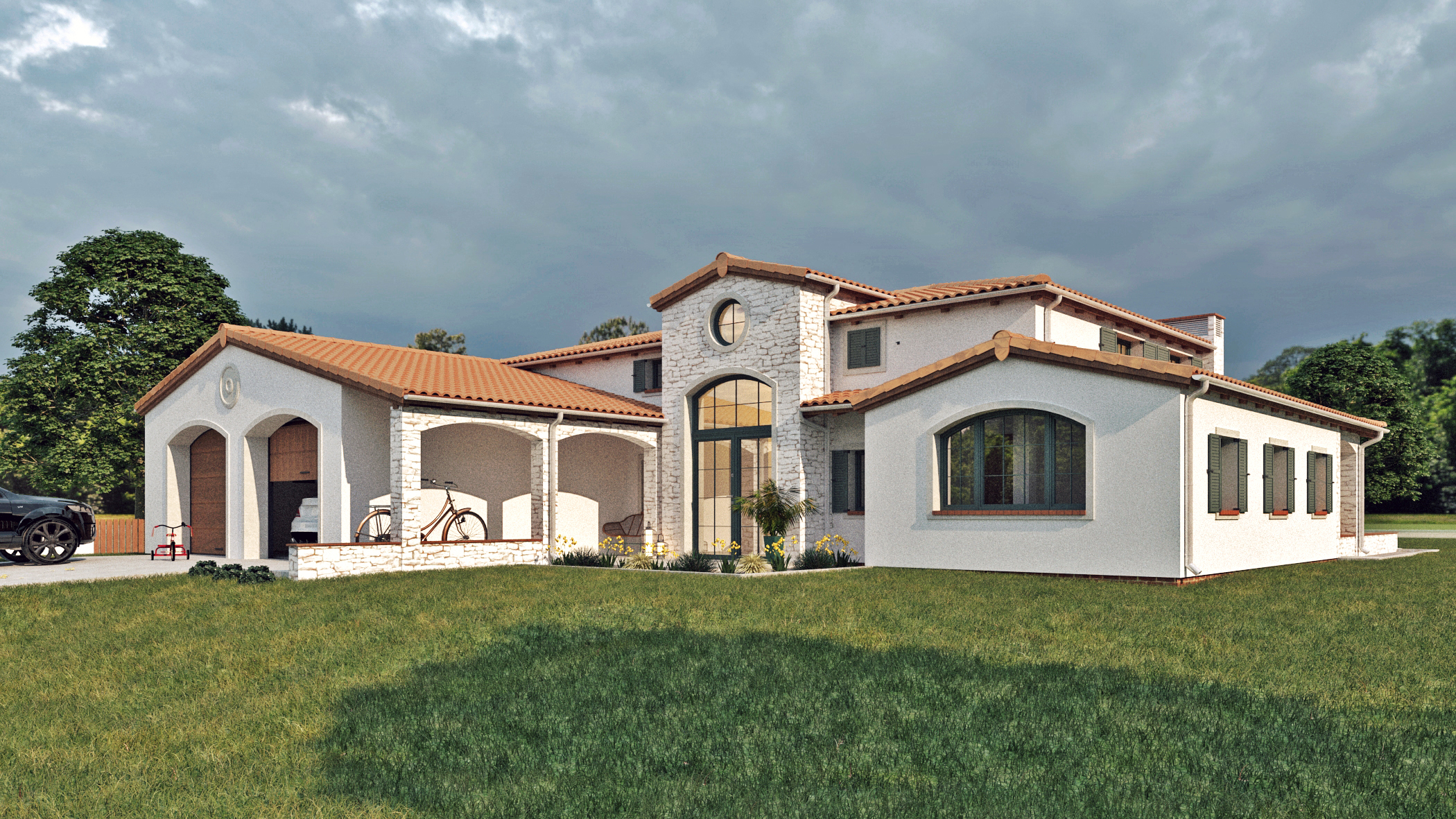 Celem projektu było stworzenie funkcjonalnego domu dla pięcioosobowej rodziny. Obiekt zlokalizowany pod miastem swoim charakterem nawiązuje do tradycyjnej zabudowy hiszpańskiej oraz domów w stylu prowansalskim.
